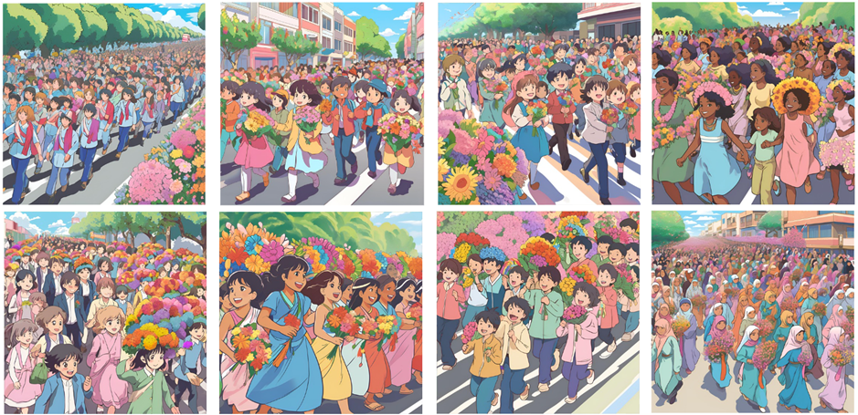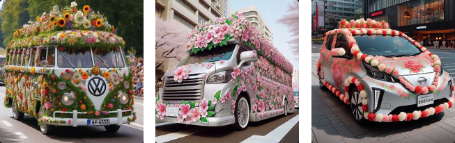 花をモチーフにした様々なパレードを行いイベントを盛り上げます。。